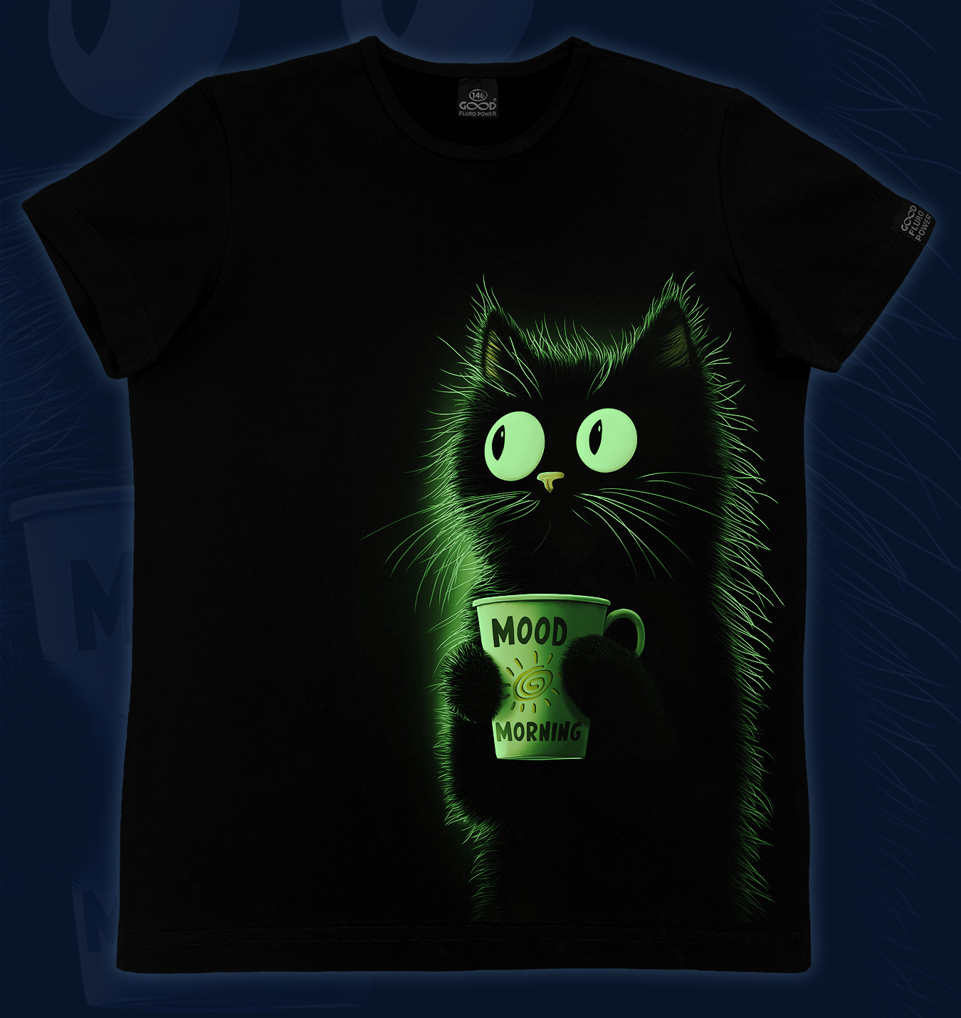 Детская футболка марки "GOOD FLURO POWER" - создана из высококачественных тканей. Дизайн светится в темноте и ультрафиолете.