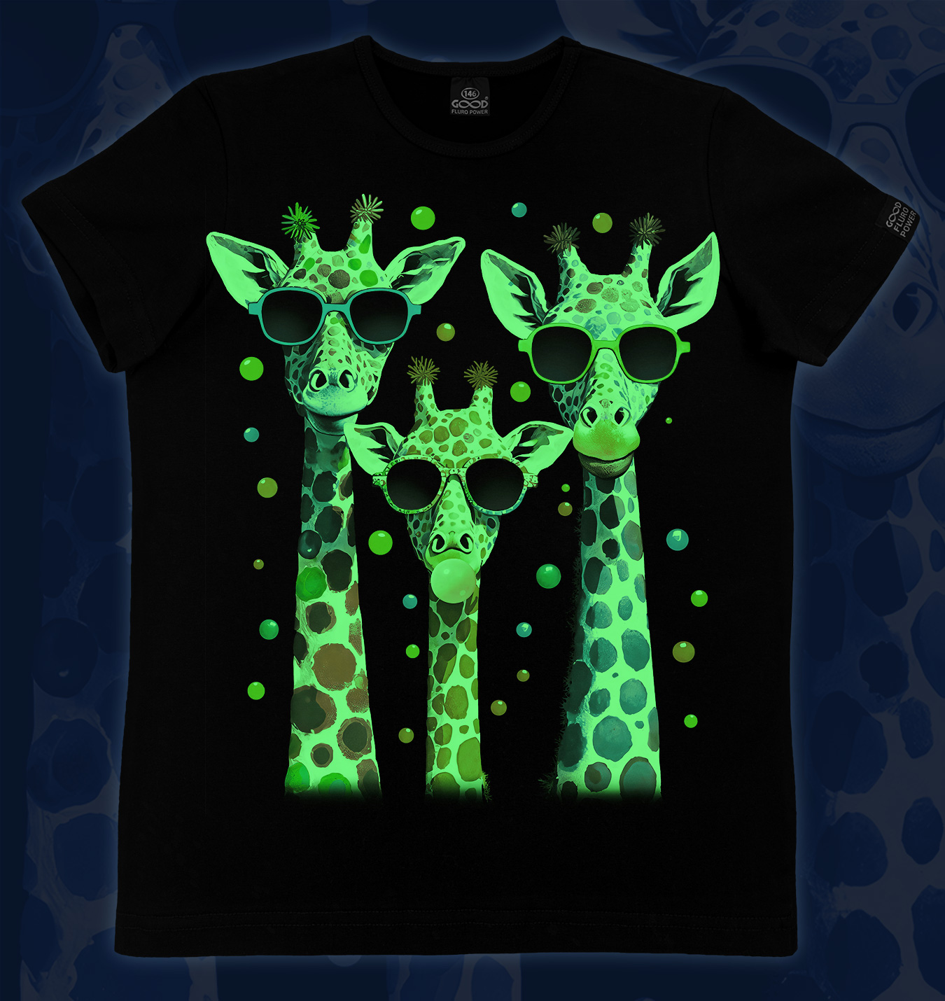 Детская футболка марки "GOOD FLURO POWER" - создана из высококачественных тканей. Дизайн светится в темноте и ультрафиолете.