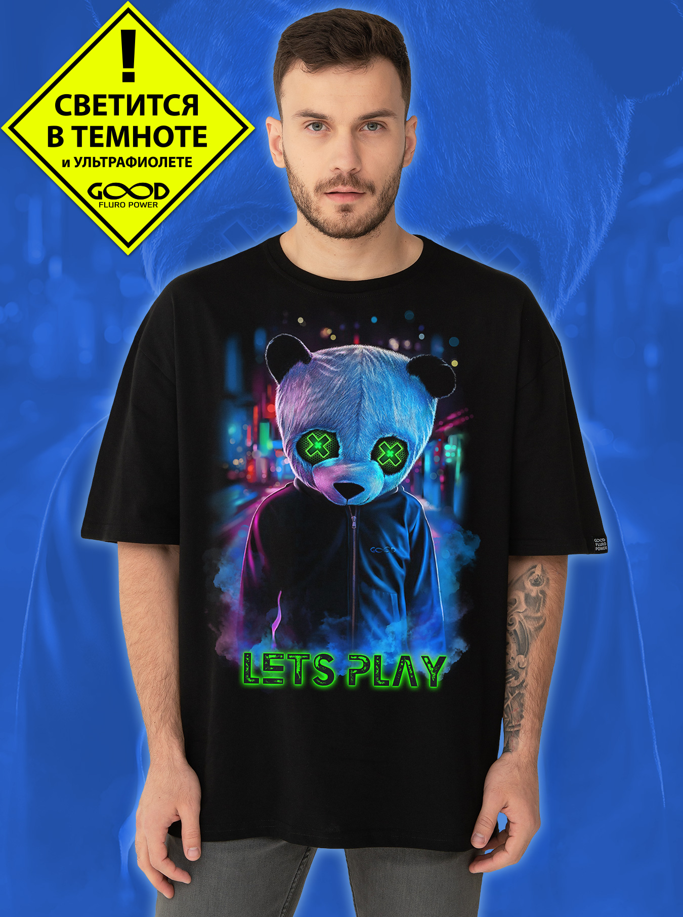Футболка оверсайз марки "GOOD FLURO POWER" - создана из высококачественных тканей. Дизайн светится в темноте и ультрафиолете - заряжается на свету и взрывается яркими красками в клубе или кафе. Одежда специально разработана для всех, кто не стесняется выражать себя, ценит сочетание комфорта, яркого стиля и высокого качества в повседневной жизни и на вечеринке.