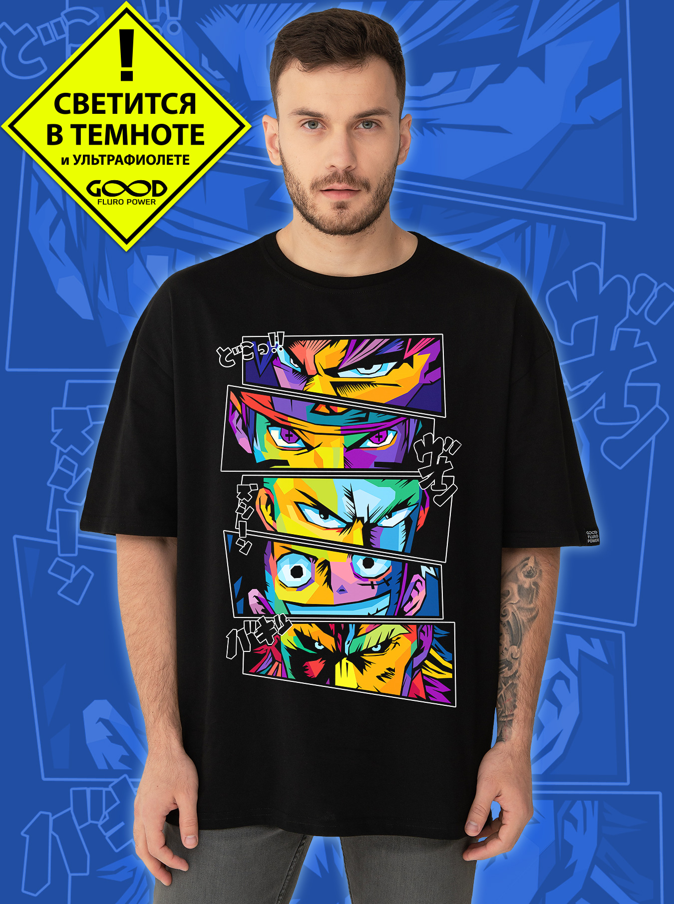 Футболка оверсайз марки "GOOD FLURO POWER" - создана из высококачественных тканей. Дизайн светится в темноте и ультрафиолете - заряжается на свету и взрывается яркими красками в клубе или кафе. Одежда специально разработана для всех, кто не стесняется выражать себя, ценит сочетание комфорта, яркого стиля и высокого качества в повседневной жизни и на вечеринке.