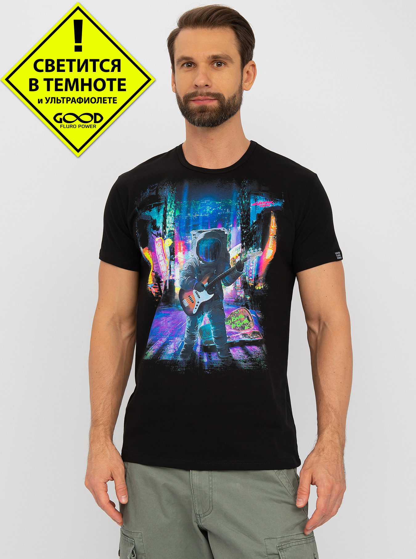 Мужская футболка марки "GOOD FLURO POWER" - создана из высококачественных тканей. Дизайн светится в темноте и ультрафиолете - заряжается на свету и взрывается яркими красками в клубе или кафе. Одежда специально разработана для всех, кто не стесняется выражать себя, ценит сочетание комфорта, яркого стиля и высокого качества в повседневной жизни и на вечеринке.