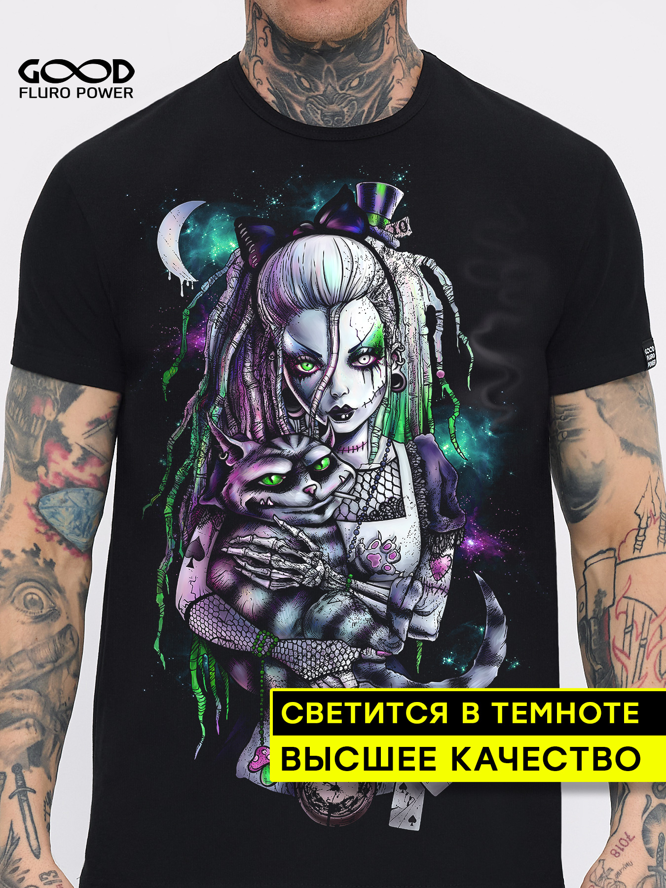 Мужская футболка марки "GOOD FLURO POWER" - создана из высококачественных тканей. Дизайн светится в темноте и ультрафиолете - заряжается на свету и взрывается яркими красками в клубе или кафе. Одежда специально разработана для всех, кто не стесняется выражать себя, ценит сочетание комфорта, яркого стиля и высокого качества в повседневной жизни и на вечеринке.