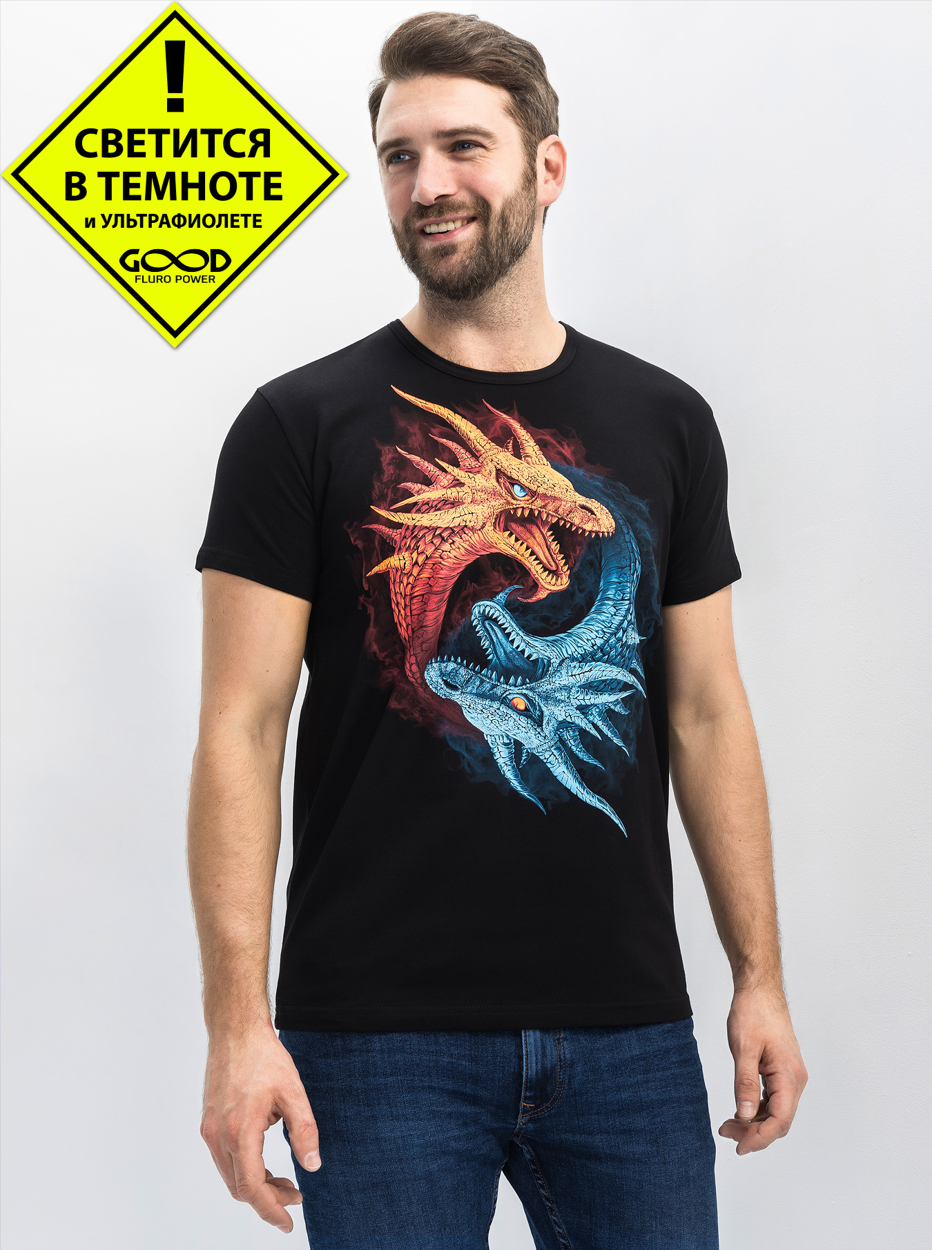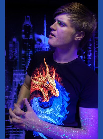 Мужская футболка марки "GOOD FLURO POWER" - создана из высококачественных тканей. Дизайн светится в темноте и ультрафиолете - заряжается на свету и взрывается яркими красками в клубе или кафе. Одежда специально разработана для всех, кто не стесняется выражать себя, ценит сочетание комфорта, яркого стиля и высокого качества в повседневной жизни и на вечеринке.