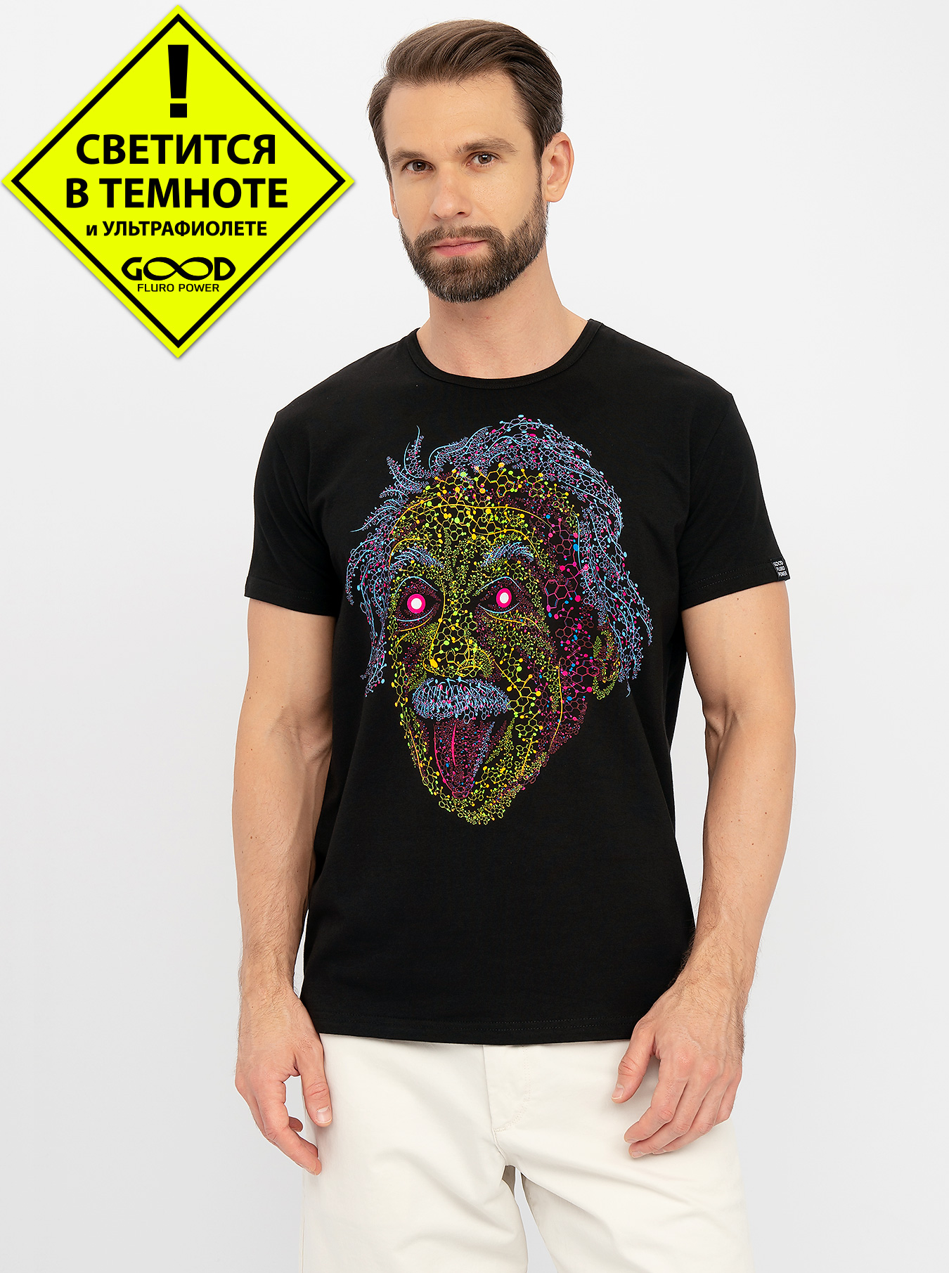 Мужская футболка марки "GOOD FLURO POWER" - создана из высококачественных тканей. Дизайн светится в темноте и ультрафиолете - заряжается на свету и взрывается яркими красками в клубе или кафе. Одежда специально разработана для всех, кто не стесняется выражать себя, ценит сочетание комфорта, яркого стиля и высокого качества в повседневной жизни и на вечеринке.