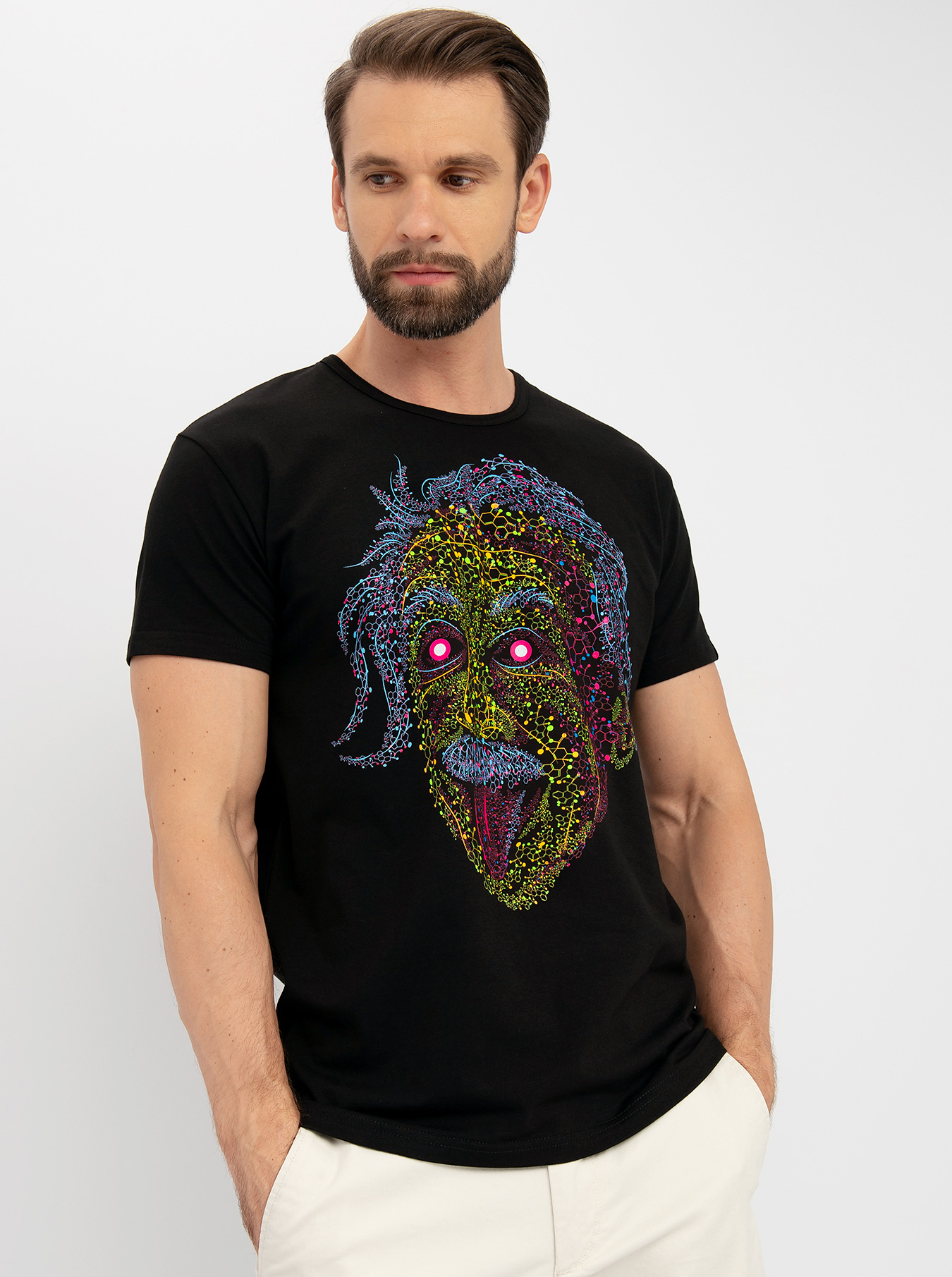 Мужская футболка марки "GOOD FLURO POWER" - создана из высококачественных тканей. Дизайн светится в темноте и ультрафиолете - заряжается на свету и взрывается яркими красками в клубе или кафе. Одежда специально разработана для всех, кто не стесняется выражать себя, ценит сочетание комфорта, яркого стиля и высокого качества в повседневной жизни и на вечеринке.