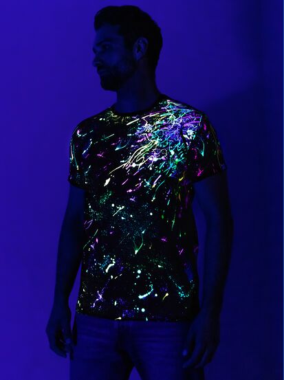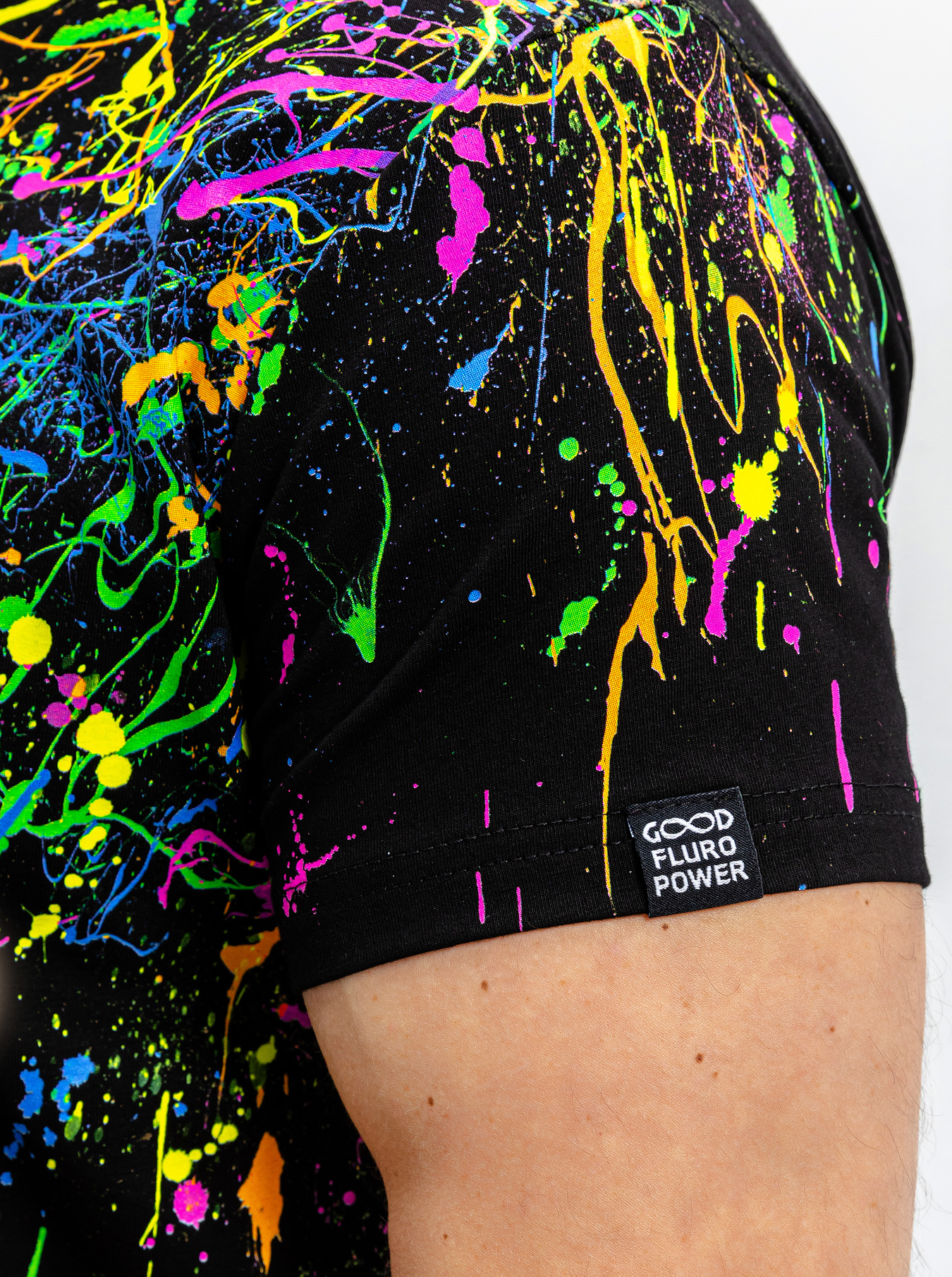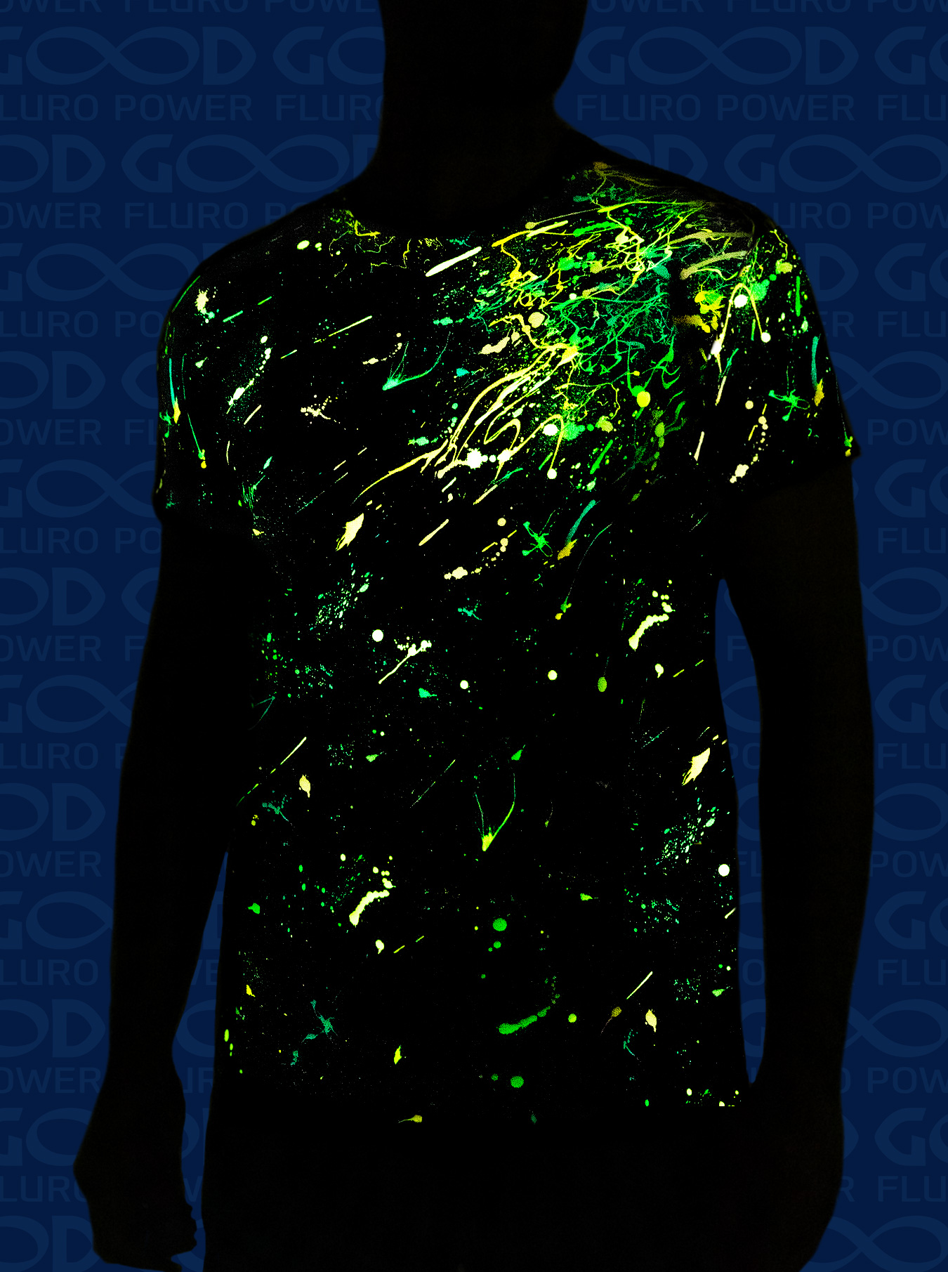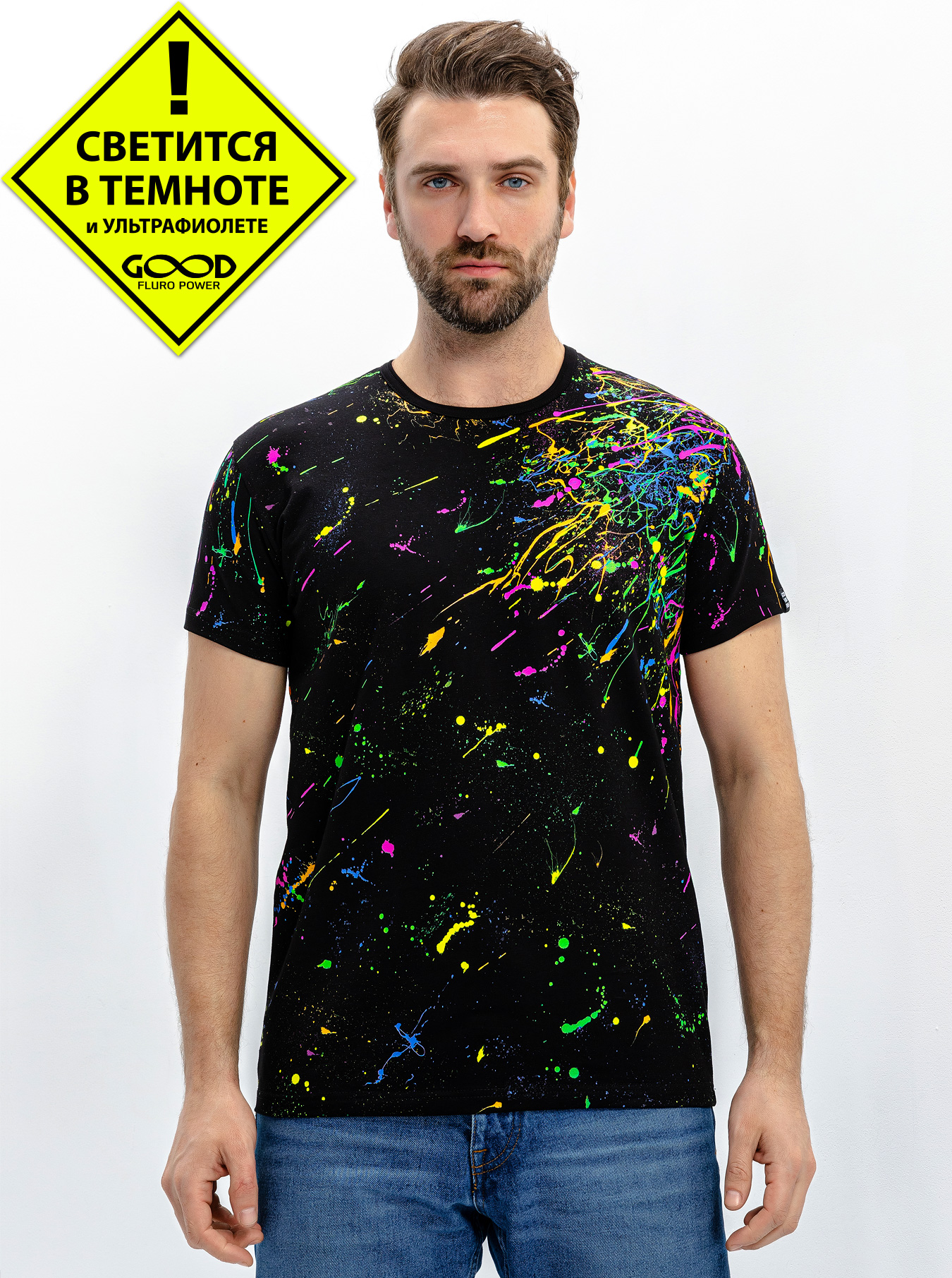 Мужская футболка марки "GOOD FLURO POWER" - создана из высококачественных тканей. Дизайн светится в ультрафиолете - взрывается яркими красками в клубе или кафе. Одежда специально разработана для всех, кто не стесняется выражать себя, ценит сочетание комфорта, яркого стиля и высокого качества в повседневной жизни и на вечеринке.