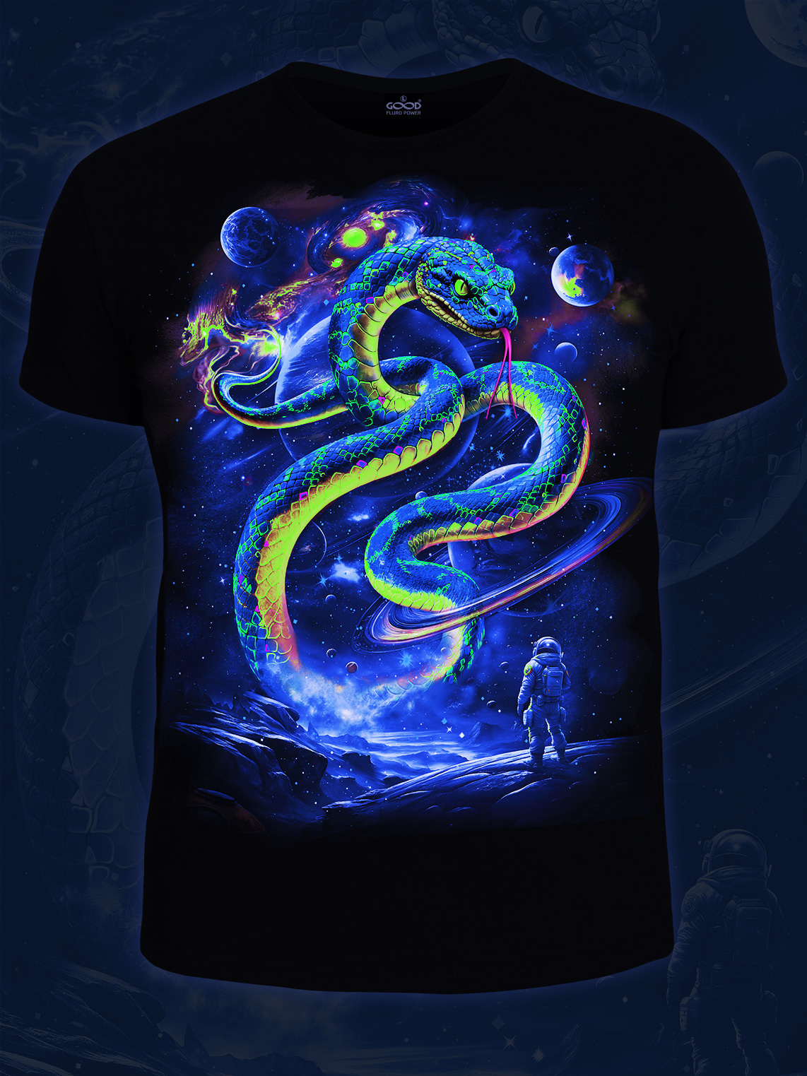 Мужская футболка марки "GOOD FLURO POWER" - создана из высококачественных тканей. Дизайн светится в темноте и ультрафиолете - заряжается на свету и взрывается яркими красками в клубе или кафе. Одежда специально разработана для всех, кто не стесняется выражать себя, ценит сочетание комфорта, яркого стиля и высокого качества в повседневной жизни и на вечеринке.