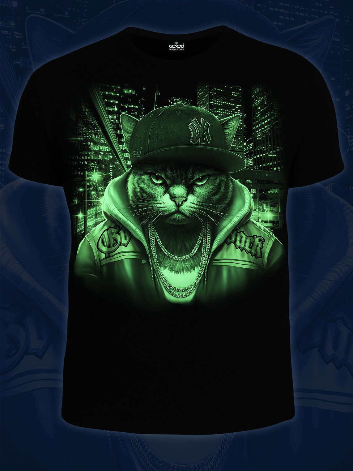 Мужская футболка марки "GOOD FLURO POWER" - создана из высококачественных тканей. Дизайн светится в темноте и ультрафиолете - заряжается на свету и взрывается яркими красками в клубе или кафе. Одежда специально разработана для всех, кто не стесняется выражать себя, ценит сочетание комфорта, яркого стиля и высокого качества в повседневной жизни и на вечеринке.