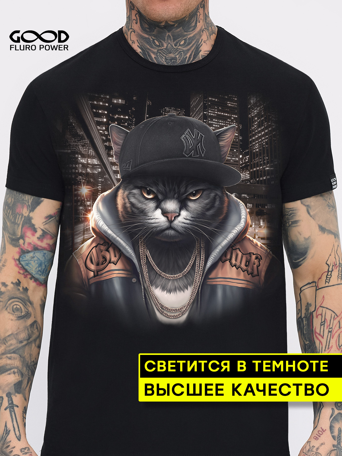 Мужская футболка марки "GOOD FLURO POWER" - создана из высококачественных тканей. Дизайн светится в темноте и ультрафиолете - заряжается на свету и взрывается яркими красками в клубе или кафе. Одежда специально разработана для всех, кто не стесняется выражать себя, ценит сочетание комфорта, яркого стиля и высокого качества в повседневной жизни и на вечеринке.