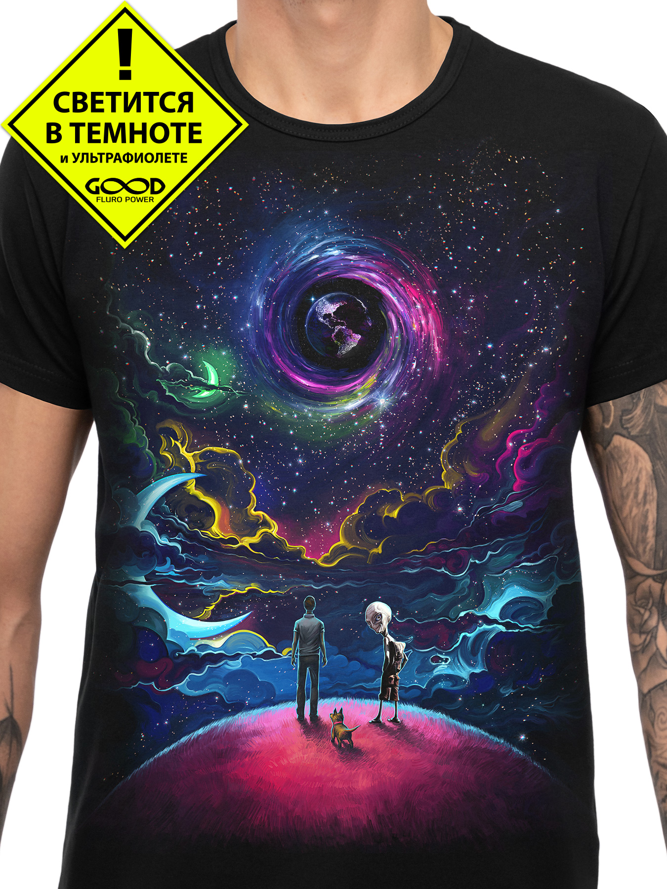 Мужская футболка марки "GOOD FLURO POWER" - создана из высококачественных тканей. Дизайн светится в темноте и ультрафиолете - заряжается на свету и взрывается яркими красками в клубе или кафе. Одежда специально разработана для всех, кто не стесняется выражать себя, ценит сочетание комфорта, яркого стиля и высокого качества в повседневной жизни и на вечеринке.