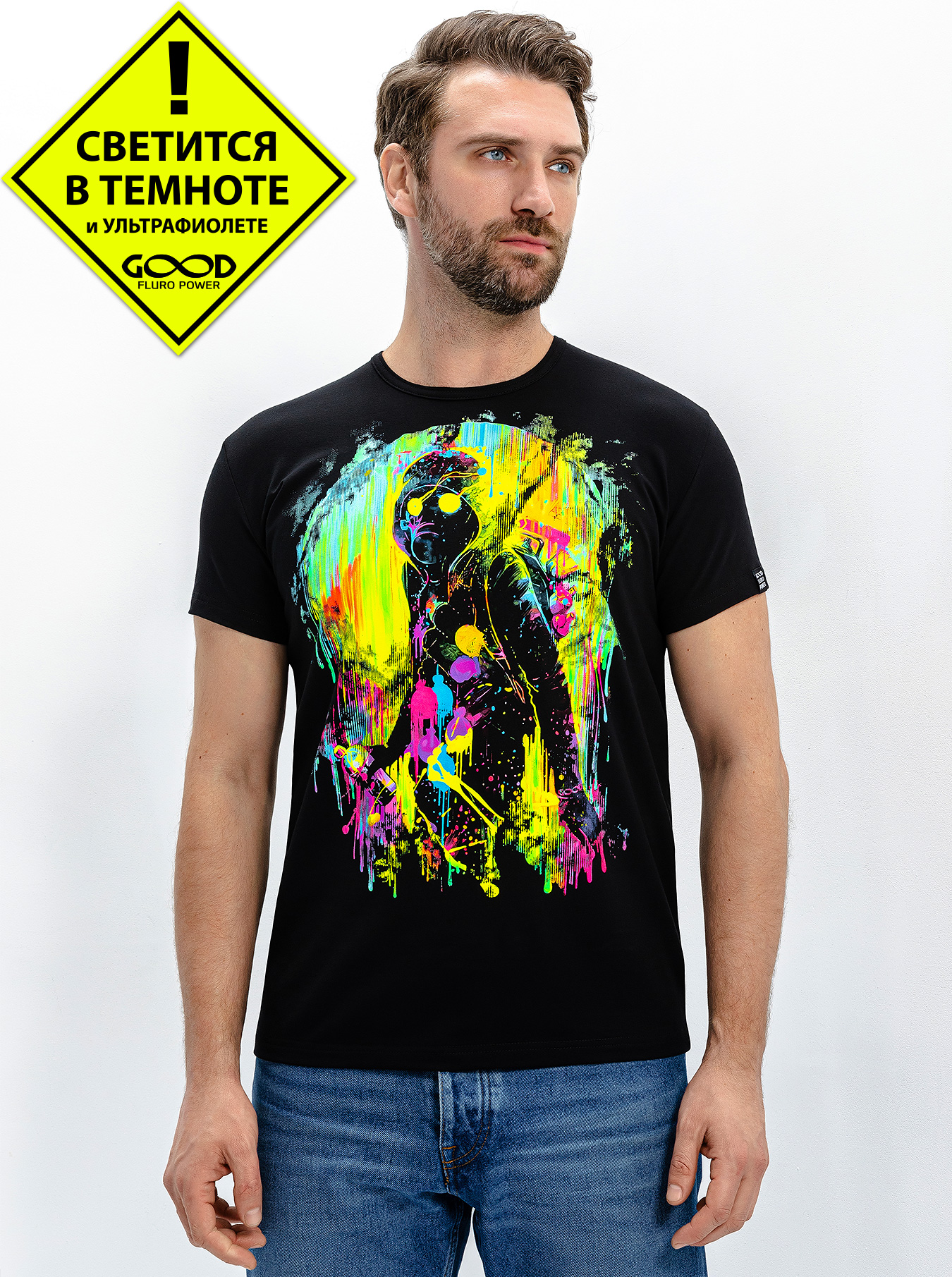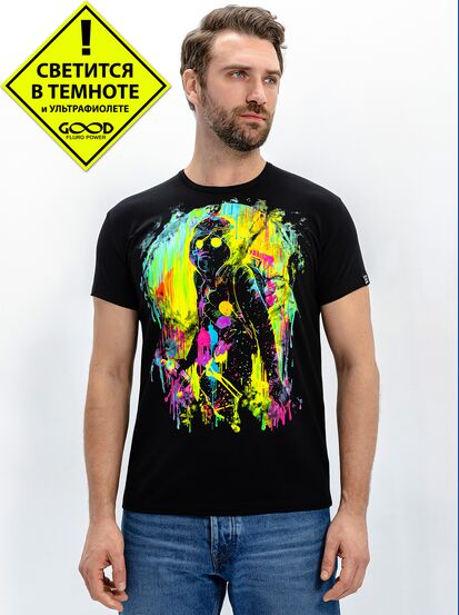 Мужская футболка марки "GOOD FLURO POWER" - создана из высококачественных тканей. Дизайн светится в темноте и ультрафиолете - заряжается на свету и взрывается яркими красками в клубе или кафе. Одежда специально разработана для всех, кто не стесняется выражать себя, ценит сочетание комфорта, яркого стиля и высокого качества в повседневной жизни и на вечеринке.