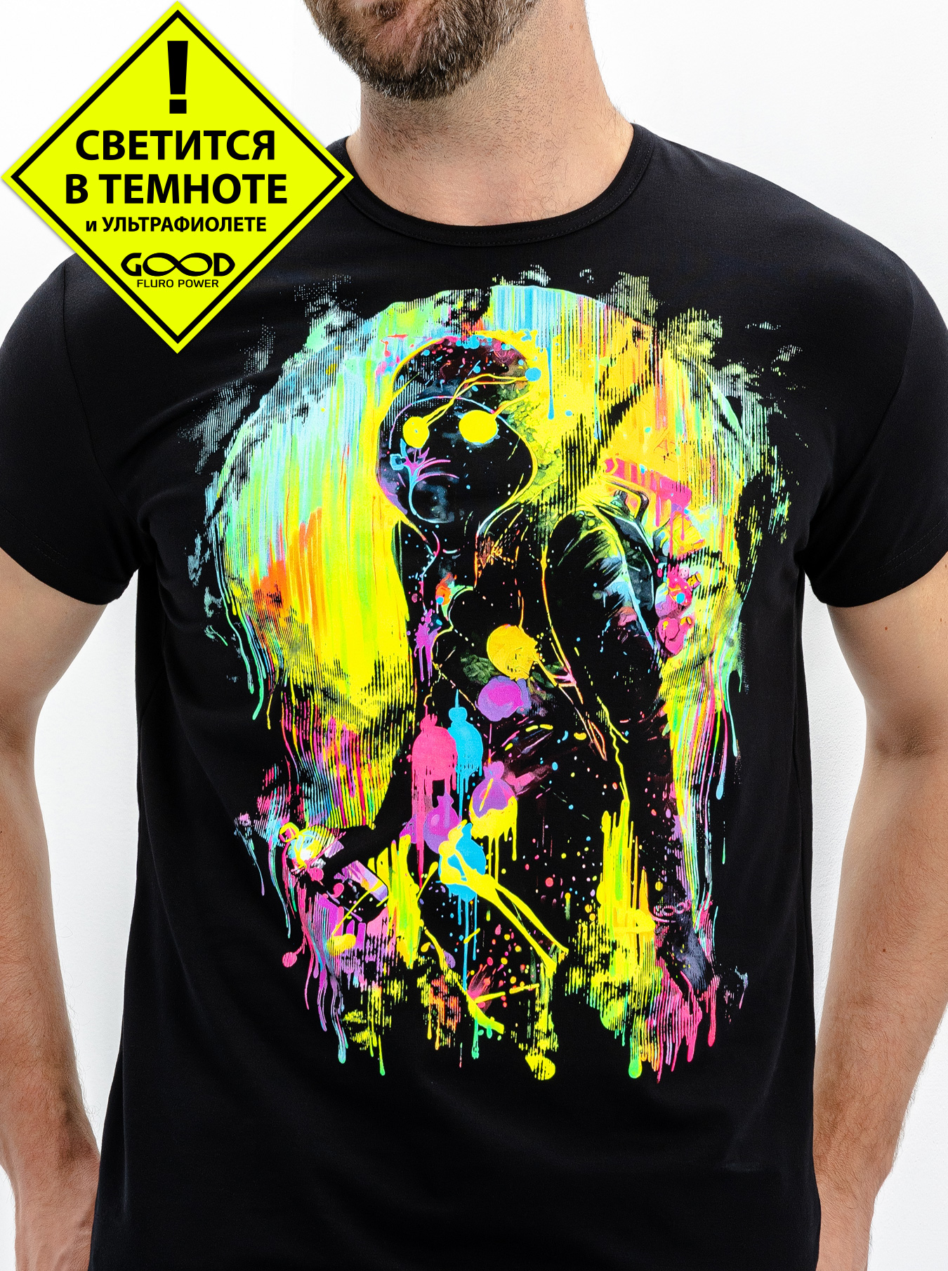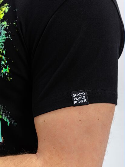 Мужская футболка марки "GOOD FLURO POWER" - создана из высококачественных тканей. Дизайн светится в темноте и ультрафиолете - заряжается на свету и взрывается яркими красками в клубе или кафе. Одежда специально разработана для всех, кто не стесняется выражать себя, ценит сочетание комфорта, яркого стиля и высокого качества в повседневной жизни и на вечеринке.