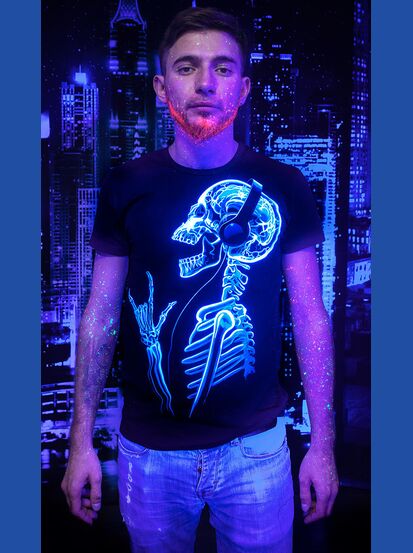 Мужская футболка марки "GOOD FLURO POWER" - создана из высококачественных тканей. Дизайн светится в темноте и ультрафиолете - заряжается на свету и взрывается яркими красками в клубе или кафе. Одежда специально разработана для всех, кто не стесняется выражать себя, ценит сочетание комфорта, яркого стиля и высокого качества в повседневной жизни и на вечеринке.
