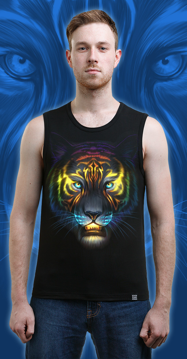 Мужская майка марки "GOOD FLURO POWER" - создана из высококачественных тканей. Дизайн светится в темноте и ультрафиолете - заряжается на свету и взрывается яркими красками в клубе или кафе. Одежда специально разработана для всех, кто не стесняется выражать себя, ценит сочетание комфорта, яркого стиля и высокого качества в повседневной жизни и на вечеринке.