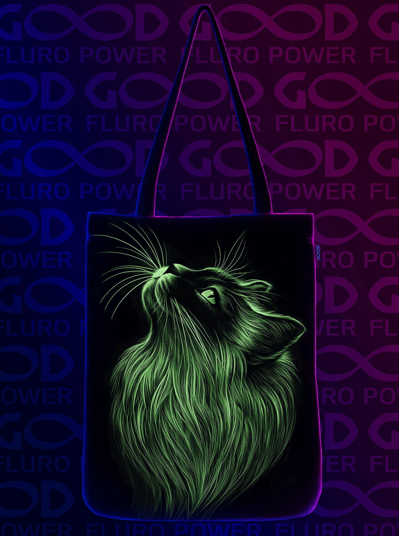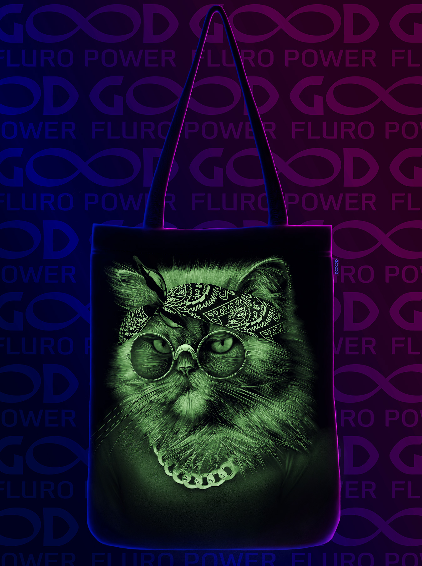 Cумка-шоппер "GOOD FLURO POWER" - создана из высококачественных тканей. Дизайн светится в темноте и ультрафиолете - заряжается на свету и взрывается яркими красками в клубе или кафе. Специально разработана для всех, кто не стесняется выражать себя, ценит сочетание комфорта, яркого стиля и высокого качества в повседневной жизни и на вечеринке.