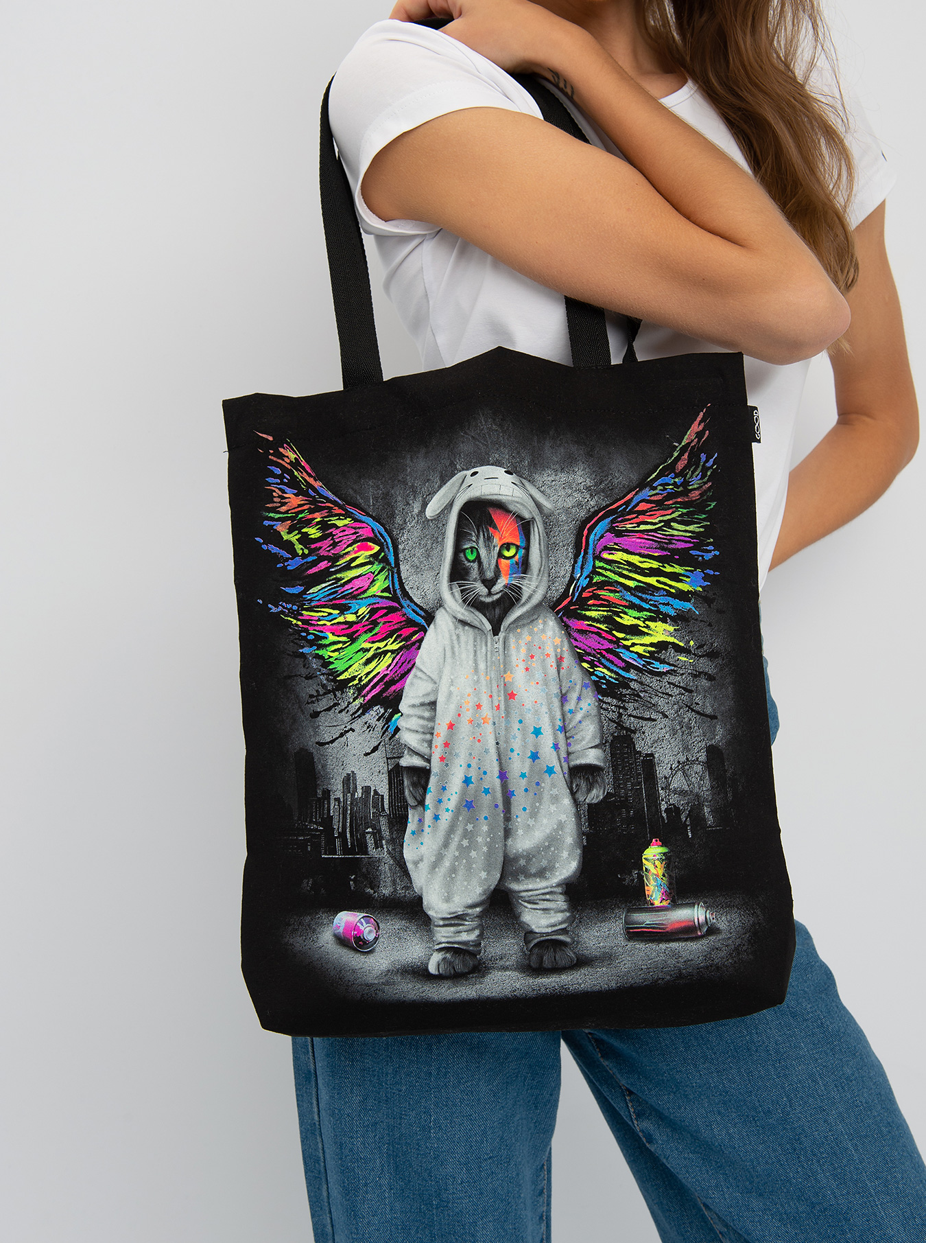 Cумка-шоппер "GOOD FLURO POWER" - создана из высококачественных тканей. Дизайн светится в темноте и ультрафиолете - заряжается на свету и взрывается яркими красками в клубе или кафе. Специально разработана для всех, кто не стесняется выражать себя, ценит сочетание комфорта, яркого стиля и высокого качества в повседневной жизни и на вечеринке.