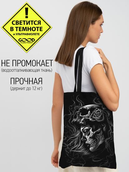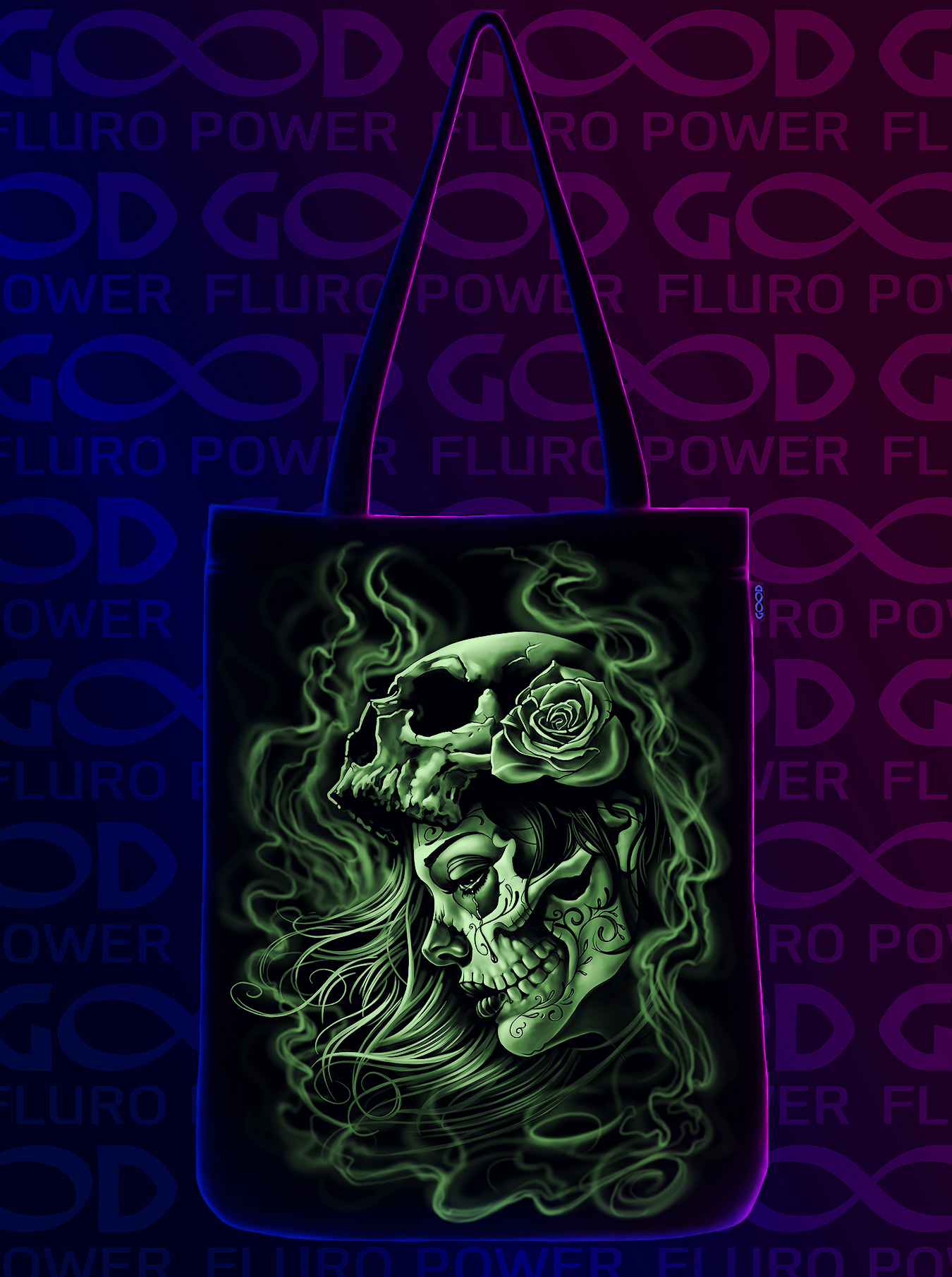 Cумка-шоппер "GOOD FLURO POWER" - создана из высококачественных тканей. Дизайн светится в темноте и ультрафиолете - заряжается на свету и взрывается яркими красками в клубе или кафе. Специально разработана для всех, кто не стесняется выражать себя, ценит сочетание комфорта, яркого стиля и высокого качества в повседневной жизни и на вечеринке.