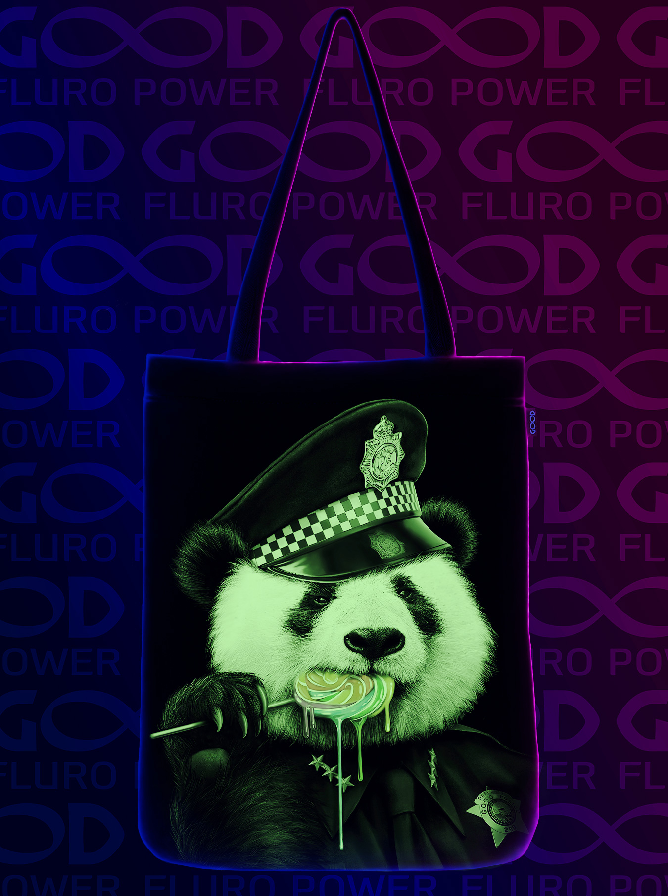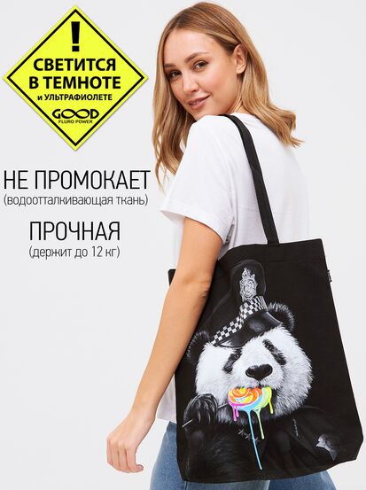 Cумка-шоппер "GOOD FLURO POWER" - создана из высококачественных тканей. Дизайн светится в темноте и ультрафиолете - заряжается на свету и взрывается яркими красками в клубе или кафе. Специально разработана для всех, кто не стесняется выражать себя, ценит сочетание комфорта, яркого стиля и высокого качества в повседневной жизни и на вечеринке.