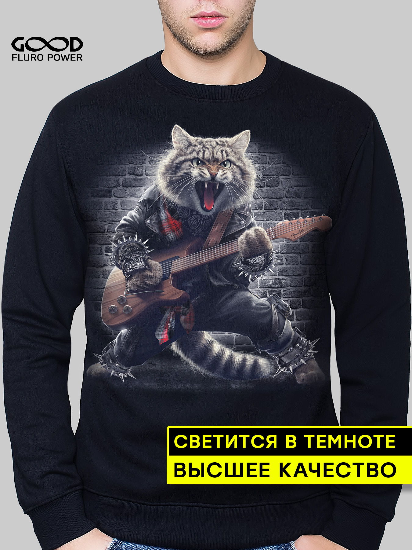 Свитшот мужской марки "GOOD FLURO POWER" - создан из высококачественных тканей. Дизайн светится в темноте и ультрафиолете - заряжается на свету и взрывается яркими красками в клубе или кафе. Одежда специально разработана для всех, кто не стесняется выражать себя, ценит сочетание комфорта, яркого стиля и высокого качества в повседневной жизни и на вечеринке.