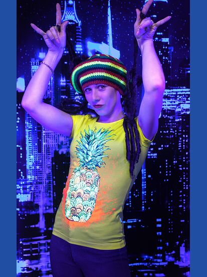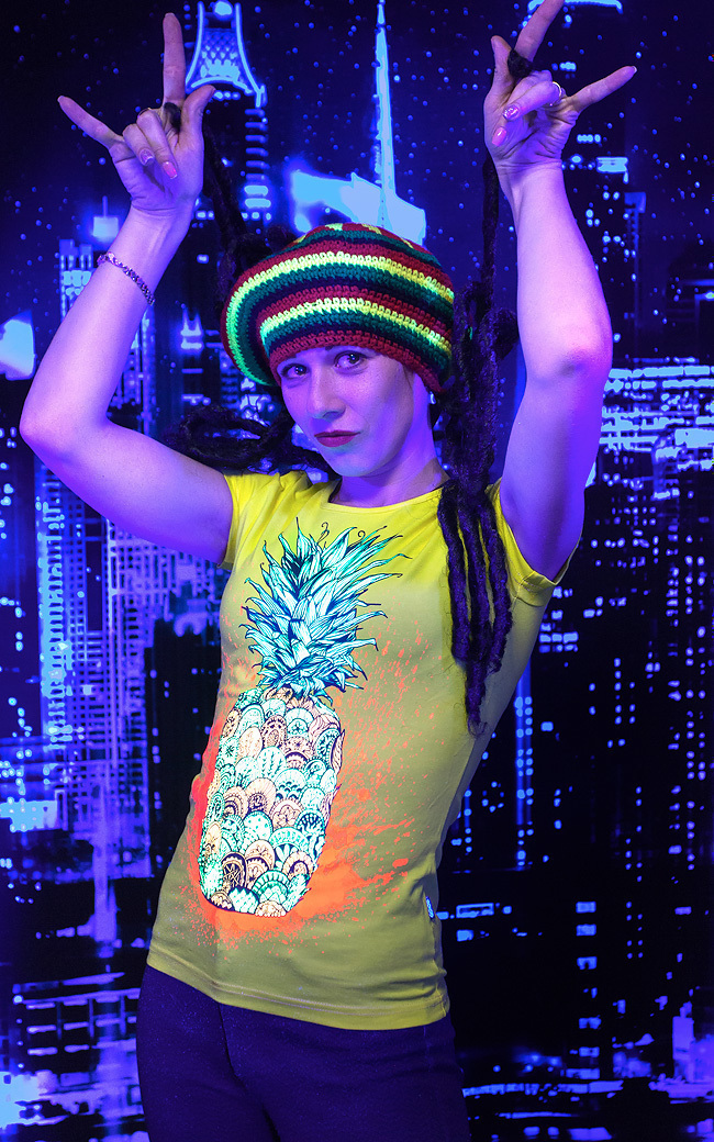 Женская футболка марки "GOOD FLURO POWER" - создана из высококачественных тканей. Дизайн светится в ультрафиолете - взрывается яркими красками в клубе или кафе. Одежда специально разработана для всех, кто не стесняется выражать себя, ценит сочетание комфорта, яркого стиля и высокого качества в повседневной жизни и на вечеринке.