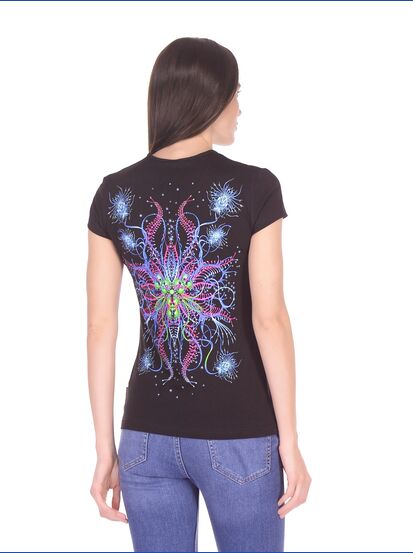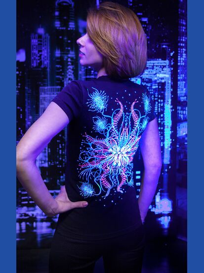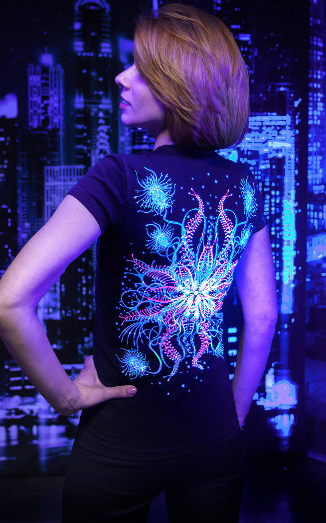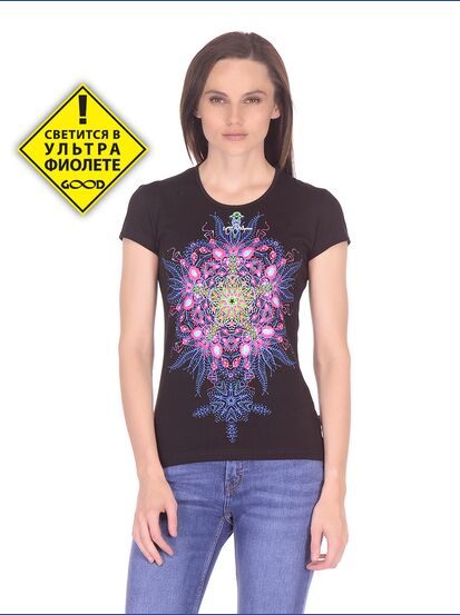 Женская футболка марки "GOOD FLURO POWER" - создана из высококачественных тканей. Дизайн светится в ультрафиолете - взрывается яркими красками в клубе или кафе. Одежда специально разработана для всех, кто не стесняется выражать себя, ценит сочетание комфорта, яркого стиля и высокого качества в повседневной жизни и на вечеринке.