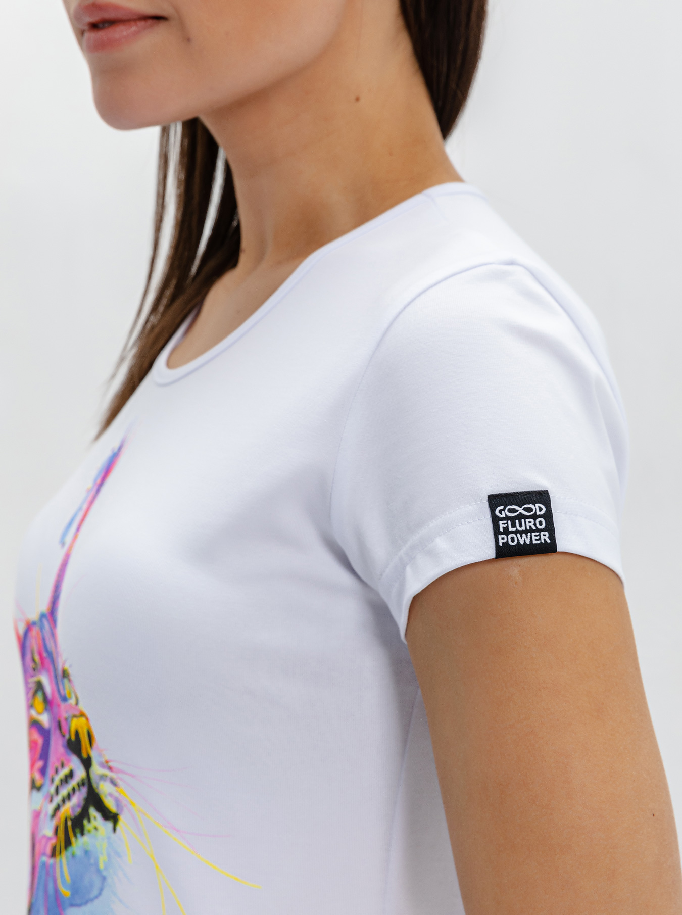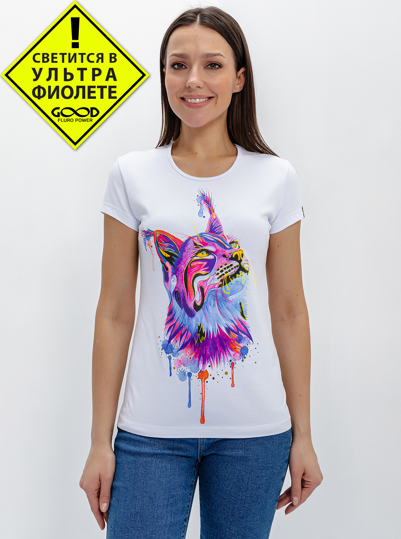 Женская футболка марки "GOOD FLURO POWER" - создана из высококачественных тканей. Дизайн светится в ультрафиолете - взрывается яркими красками в клубе или кафе. Одежда специально разработана для всех, кто не стесняется выражать себя, ценит сочетание комфорта, яркого стиля и высокого качества в повседневной жизни и на вечеринке.
