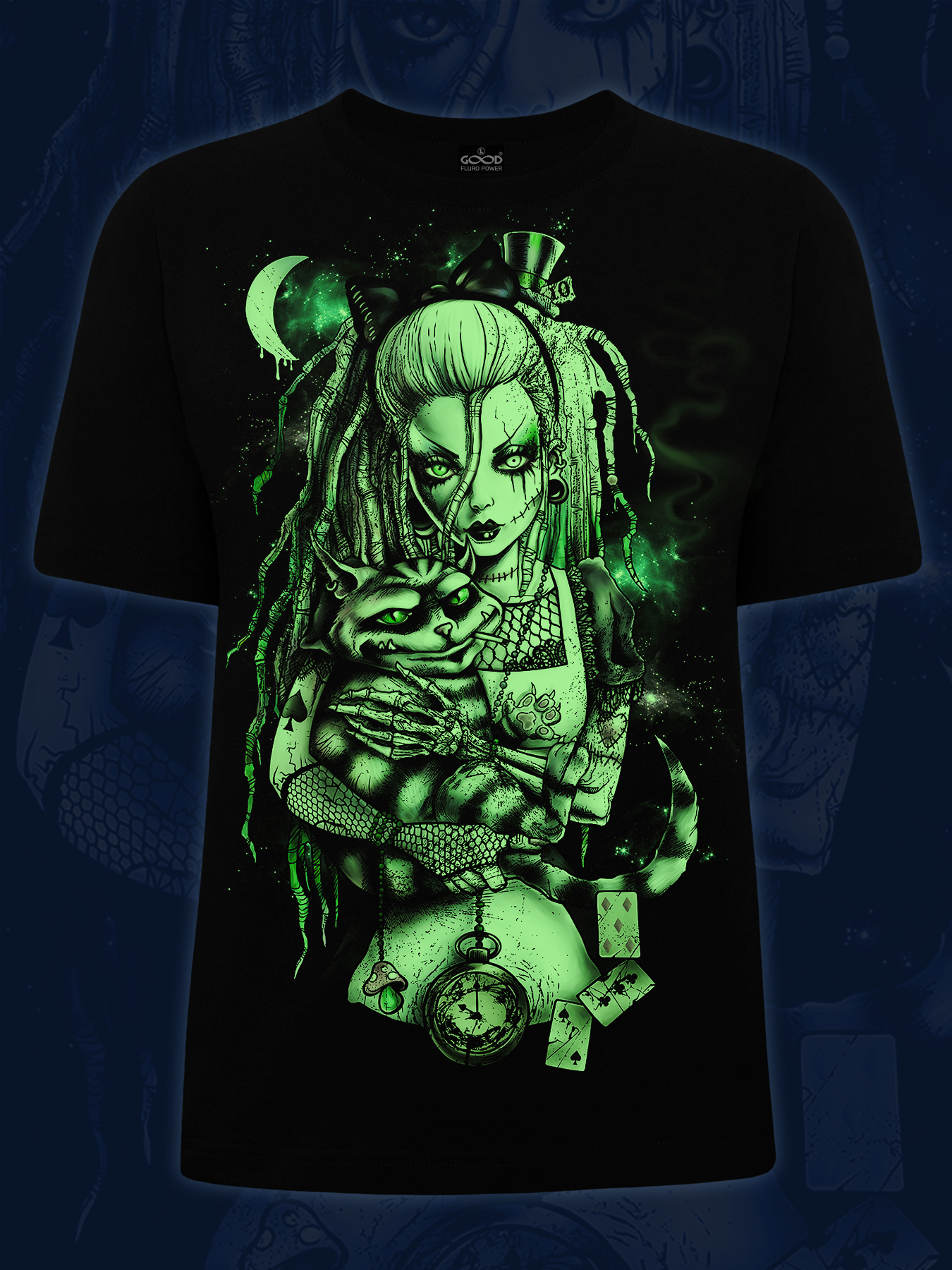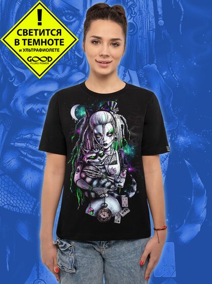 Женская футболка марки "GOOD FLURO POWER" - создана из высококачественных тканей. Дизайн светится в темноте и ультрафиолете - заряжается на свету и взрывается яркими красками в клубе или кафе. Одежда специально разработана для всех, кто не стесняется выражать себя, ценит сочетание комфорта, яркого стиля и высокого качества в повседневной жизни и на вечеринке.