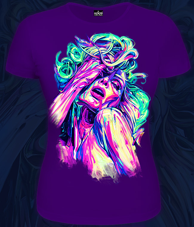 Женская футболка марки "GOOD FLURO POWER" - создана из высококачественных тканей. Дизайн светится в темноте и ультрафиолете - заряжается на свету и взрывается яркими красками в клубе или кафе. Одежда специально разработана для всех, кто не стесняется выражать себя, ценит сочетание комфорта, яркого стиля и высокого качества в повседневной жизни и на вечеринке.