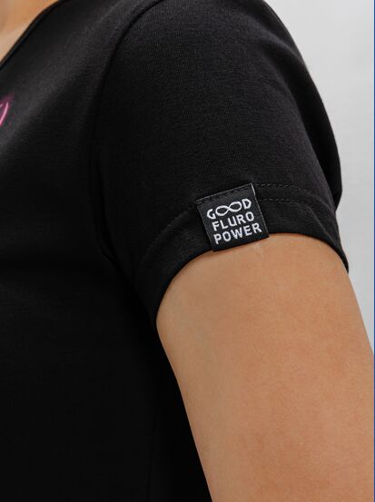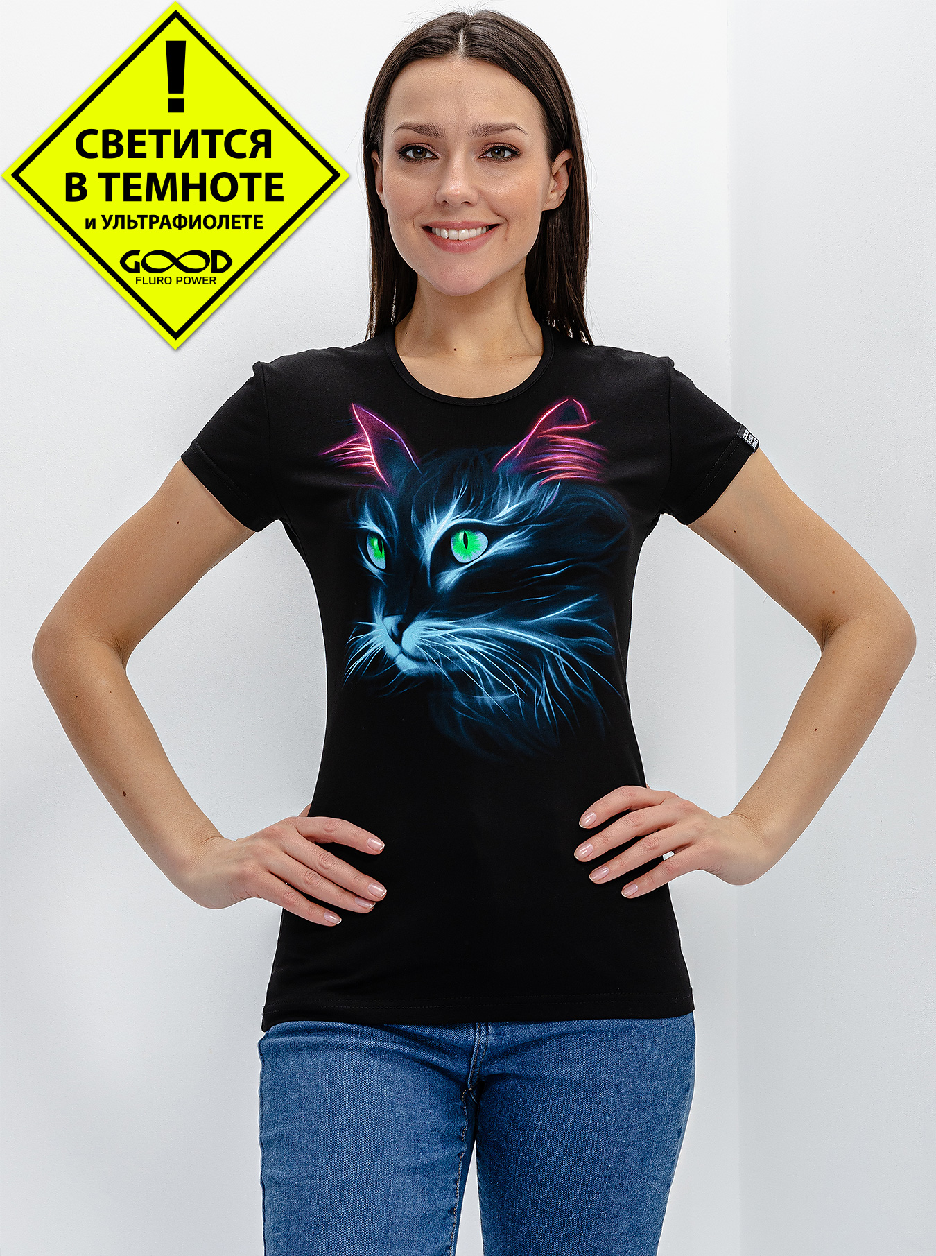 Женская футболка марки "GOOD FLURO POWER" - создана из высококачественных тканей. Дизайн светится в темноте и ультрафиолете - заряжается на свету и взрывается яркими красками в клубе или кафе. Одежда специально разработана для всех, кто не стесняется выражать себя, ценит сочетание комфорта, яркого стиля и высокого качества в повседневной жизни и на вечеринке.