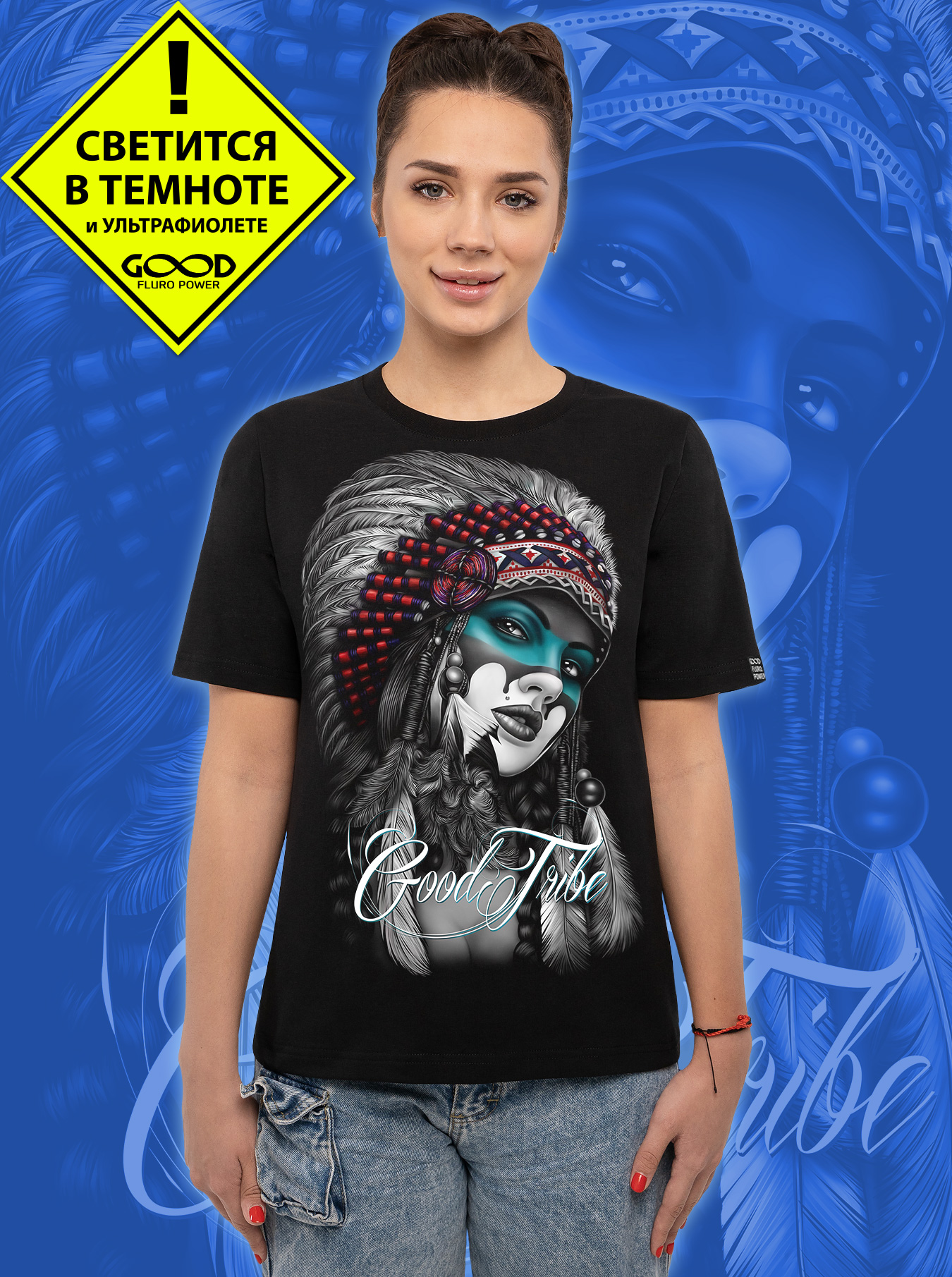 Женская футболка марки "GOOD FLURO POWER" - создана из высококачественных тканей. Дизайн светится в темноте и ультрафиолете - заряжается на свету и взрывается яркими красками в клубе или кафе. Одежда специально разработана для всех, кто не стесняется выражать себя, ценит сочетание комфорта, яркого стиля и высокого качества в повседневной жизни и на вечеринке.