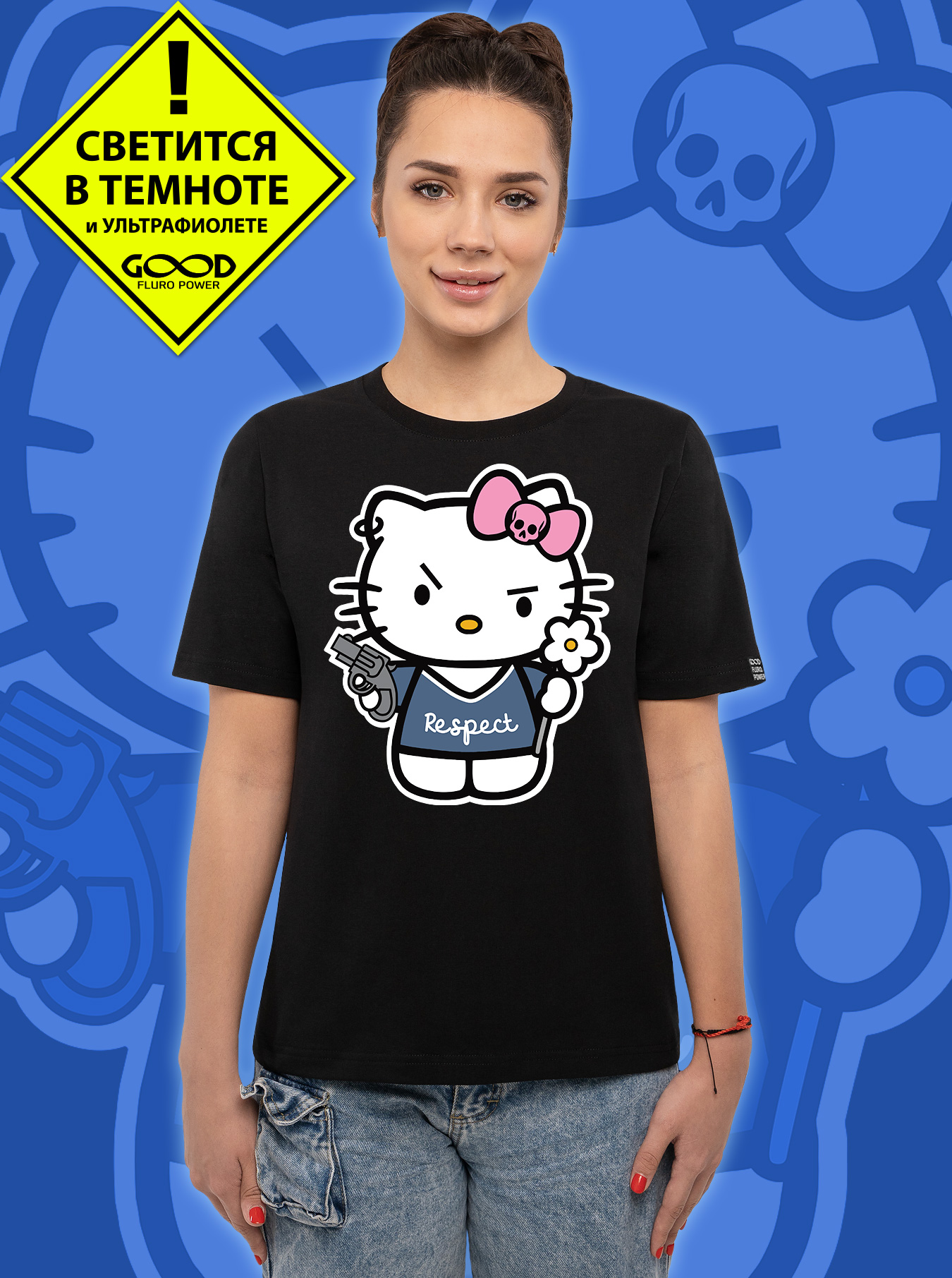 Женская футболка марки "GOOD FLURO POWER" - создана из высококачественных тканей. Дизайн светится в темноте и ультрафиолете - заряжается на свету и взрывается яркими красками в клубе или кафе. Одежда специально разработана для всех, кто не стесняется выражать себя, ценит сочетание комфорта, яркого стиля и высокого качества в повседневной жизни и на вечеринке.