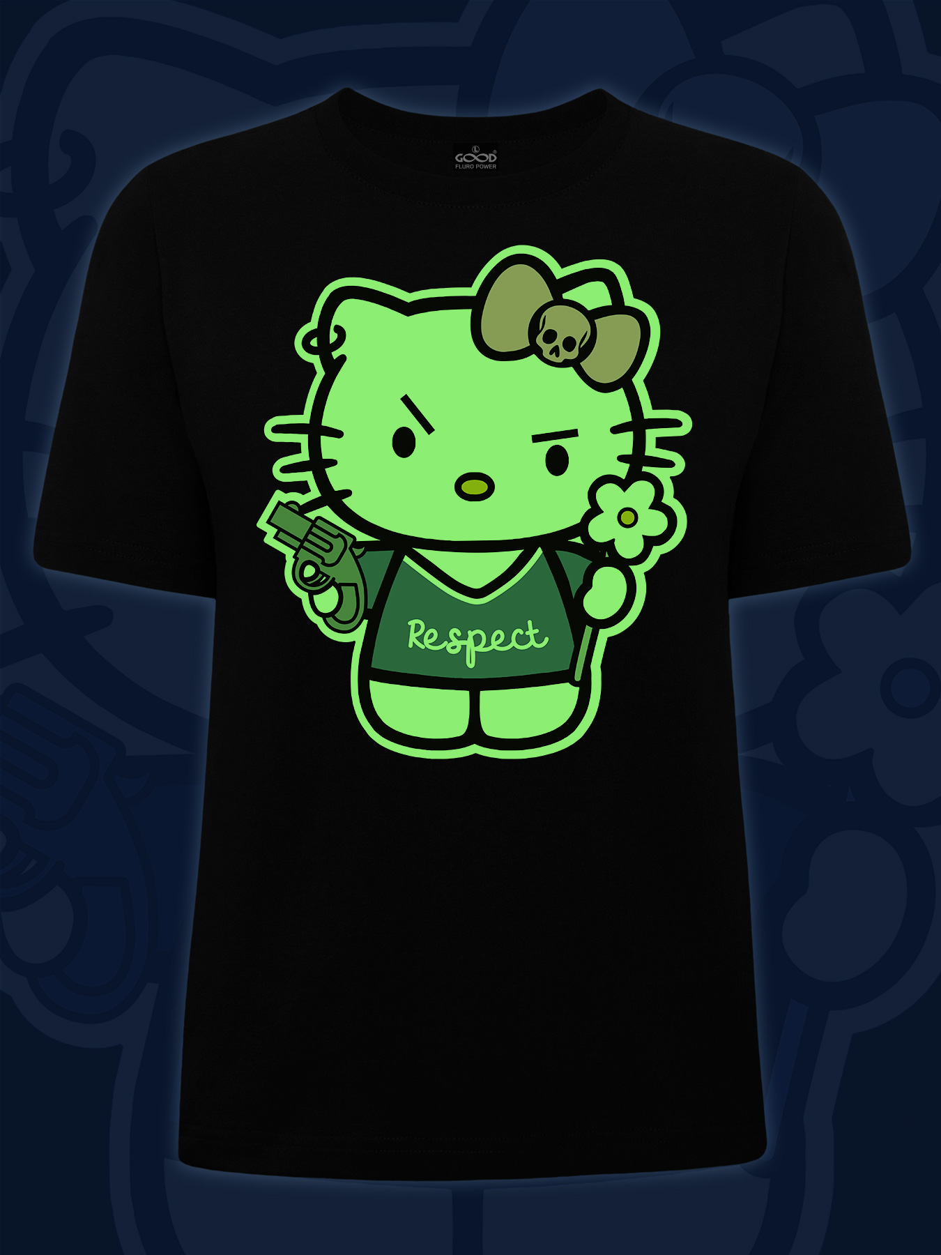 Женская футболка марки "GOOD FLURO POWER" - создана из высококачественных тканей. Дизайн светится в темноте и ультрафиолете - заряжается на свету и взрывается яркими красками в клубе или кафе. Одежда специально разработана для всех, кто не стесняется выражать себя, ценит сочетание комфорта, яркого стиля и высокого качества в повседневной жизни и на вечеринке.