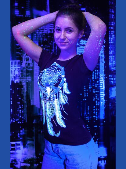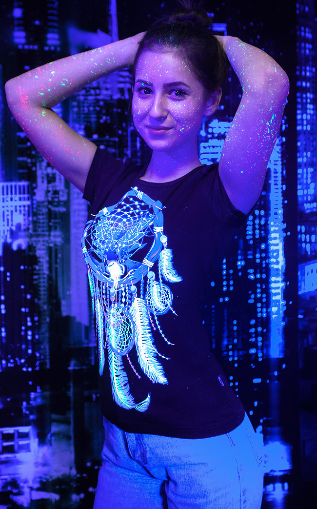Женская футболка марки "GOOD FLURO POWER" - создана из высококачественных тканей. Дизайн светится в ультрафиолете - взрывается яркими красками в клубе или кафе. Одежда специально разработана для всех, кто не стесняется выражать себя, ценит сочетание комфорта, яркого стиля и высокого качества в повседневной жизни и на вечеринке.
