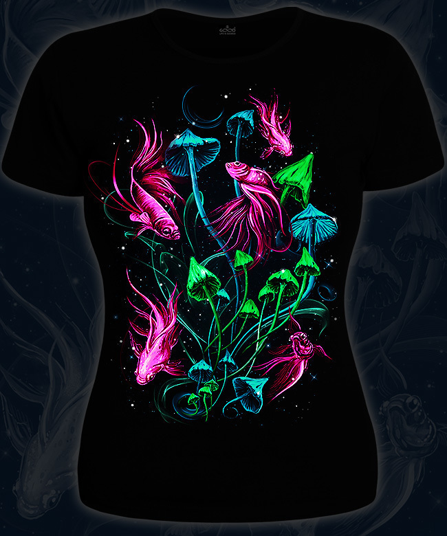 Женская футболка марки "GOOD FLURO POWER" - создана из высококачественных тканей. Дизайн светится в темноте и ультрафиолете - заряжается на свету и взрывается яркими красками в клубе или кафе. Одежда специально разработана для всех, кто не стесняется выражать себя, ценит сочетание комфорта, яркого стиля и высокого качества в повседневной жизни и на вечеринке.