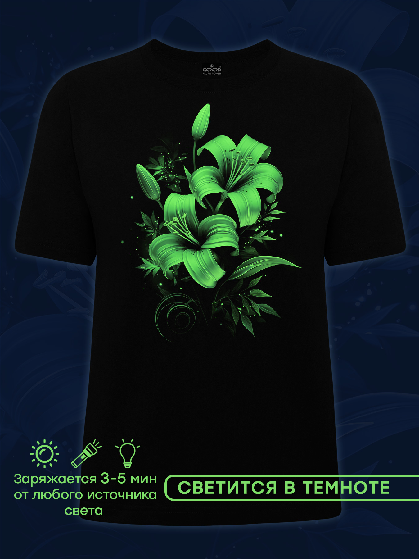 Женская футболка марки "GOOD FLURO POWER" - создана из высококачественных тканей. Дизайн светится в темноте и ультрафиолете - заряжается на свету и взрывается яркими красками в клубе или кафе. Одежда специально разработана для всех, кто не стесняется выражать себя, ценит сочетание комфорта, яркого стиля и высокого качества в повседневной жизни и на вечеринке.