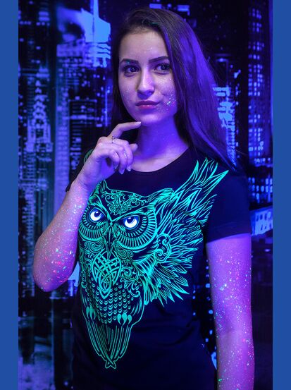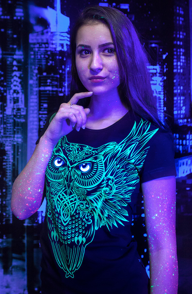 Женская футболка марки "GOOD FLURO POWER" - создана из высококачественных тканей. Дизайн светится в темноте и ультрафиолете - заряжается на свету и взрывается яркими красками в клубе или кафе. Одежда специально разработана для всех, кто не стесняется выражать себя, ценит сочетание комфорта, яркого стиля и высокого качества в повседневной жизни и на вечеринке.